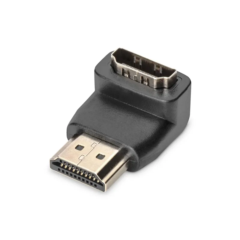Adapter DIGITUS HDMI 2.0 HighSpeed z Ethernetem Typ HDMI A kątowy/HDMI A to adapter. Umożliwia podłączenie urządzeń z różnymi złączami.