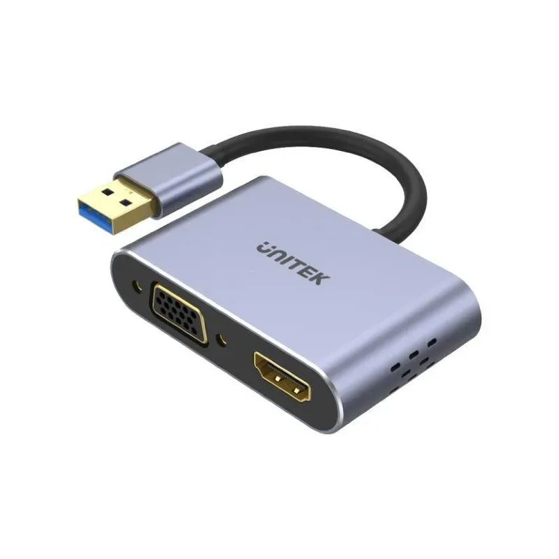 Kabel adapter Unitek V1304A USB-A - HDMI, VGA, fullHD to adapter o długości 0.10 m. Umożliwia podłączenie urządzeń z różnymi złączami.