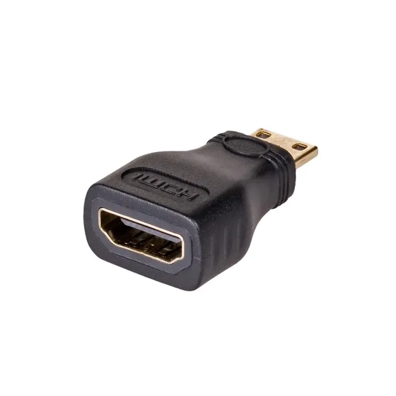 Interfejs: HDMI - Mini HDMI. Typ kabla / urządzenia: Adapter / Konwerter / Przejściówka. Złącze 1: HDMI Typu A 19-pin (żeńskie). Złącze 2: Mini HDMI Typu C 19-pin (męskie).