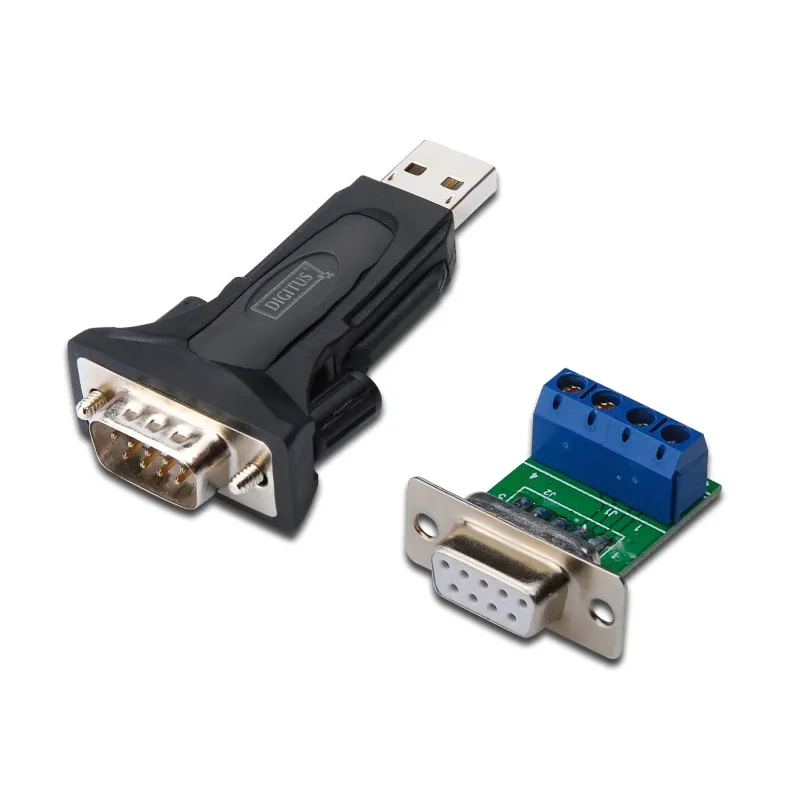 Konwerter Digitus DA-70157 USB 2.0/485 M/M to adapter o długości 0.80 m. Umożliwia podłączenie urządzeń z różnymi złączami.
