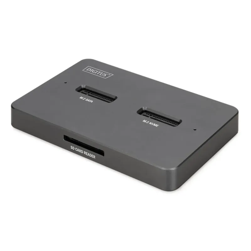Stacja dokująca DIGITUS USB-C 3.2 Gen2 dla dysków SSD M.2 Duo NVMe oraz to akcesorium do dysków. Ułatwia montaż i podłączenie dysków.