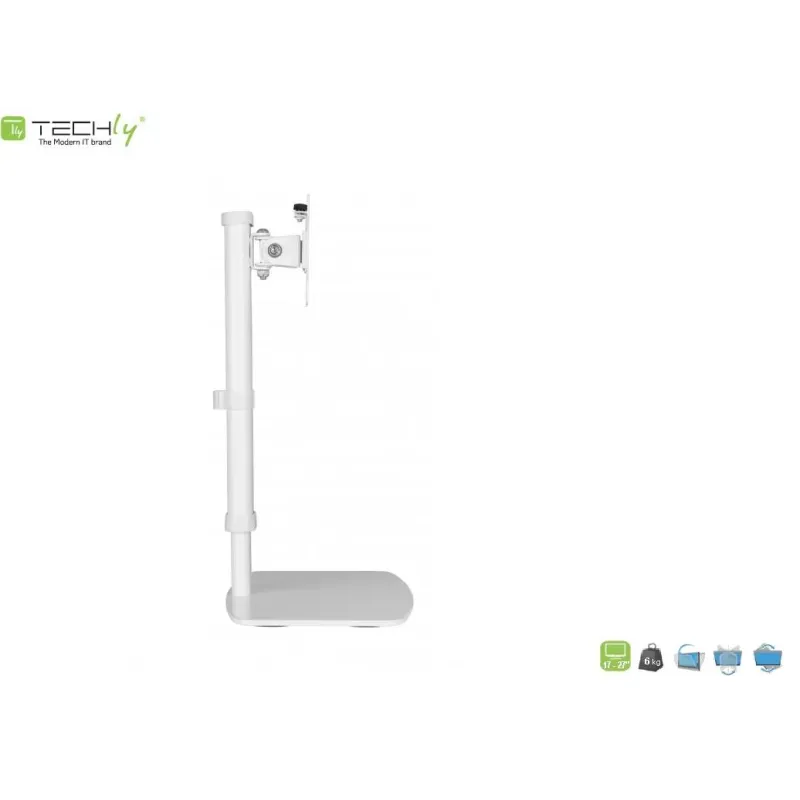 Uchwyt biurkowy Techly 17"-27", 6kg pionowy Uchwyt biurkowy Techly 17"-27", 6kg pionowy to akcesorium komputerowe. Zwiększa funkcjonalność i komfort użytkowania komputera lub monitora. Biały Kolor 27.0.