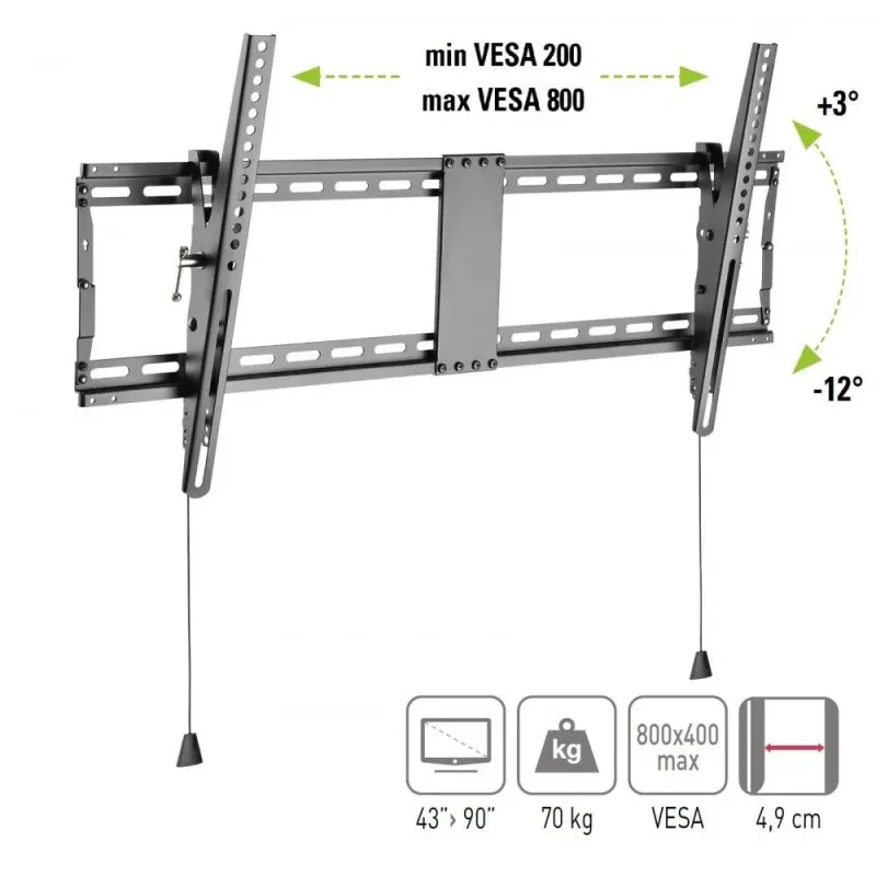 Funkcje dodatkowe: Odległość od ściany: 49 mm. Montaż VESA: 400 x 400, 800 x 400, 600 x 400, 200 x 200, 300 x 300, 400 x 200, 400 x 300, 600 x 200. Przeznaczenie: LCD / LED / PLAZMA / monitor.