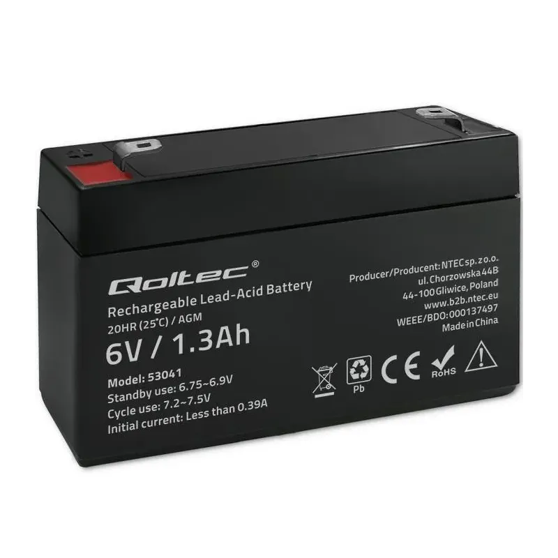 Akumulator AGM Qoltec 6V | 1.3Ah to produkt o pojemności 1300 mAh.