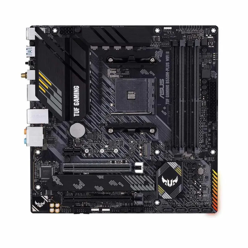 Płyta Asus TUF GAMING B550M-PLUS WIFI II /AMD Płyta Asus TUF GAMING B550M-PLUS WIFI II /AMD to płyta główna AMD AM4. Stanowi podstawę zestawu komputerowego z procesorami AMD Ryzen. Micro-ATX Format płyty.