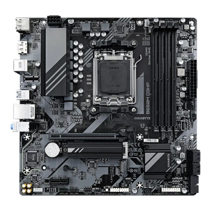 Płyta Gigabyte B650M D3HP /AMD B650/DDR5/SATA3/M.2/USB3.0/PCIe4.0/AM5/mATX to płyta główna AMD AM5. Stanowi podstawę zestawu komputerowego z procesorami AMD Ryzen 7000/9000.