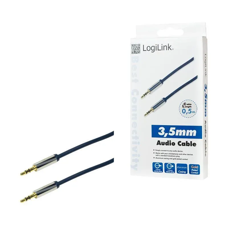 Kabel audio stereo LogiLink CA10050 3,5 mm, M/M, 0,5m, niebieski to kabel audio/video o długości 0.50 m. Przesyła sygnał audio lub wideo między urządzeniami.
