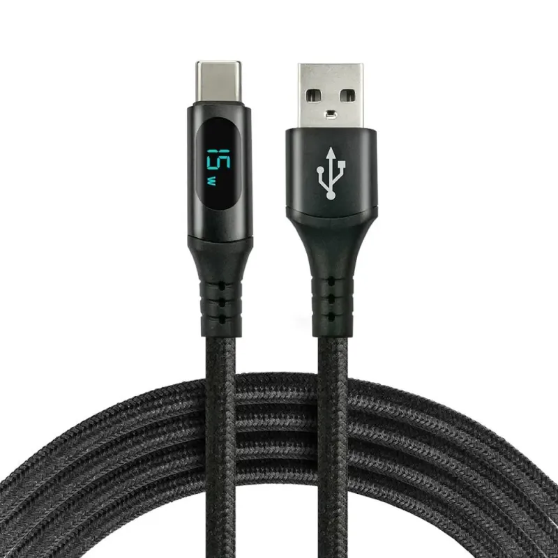 Kabel USB - USB-C everActive CBB-2CBL 2m 3A wbudowany wyświetlacz czarny to kabel audio/video o długości 2.00 m. Przesyła sygnał audio lub wideo między urządzeniami.
