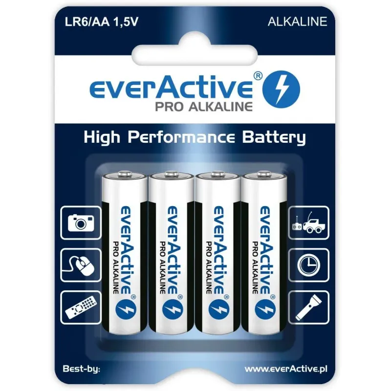 Baterie alkaliczne AA/LR6 everActive Pro Alkaline 4 sztuki to bateria. Zapewnia zasilanie urządzeń przenośnych i elektronicznych.