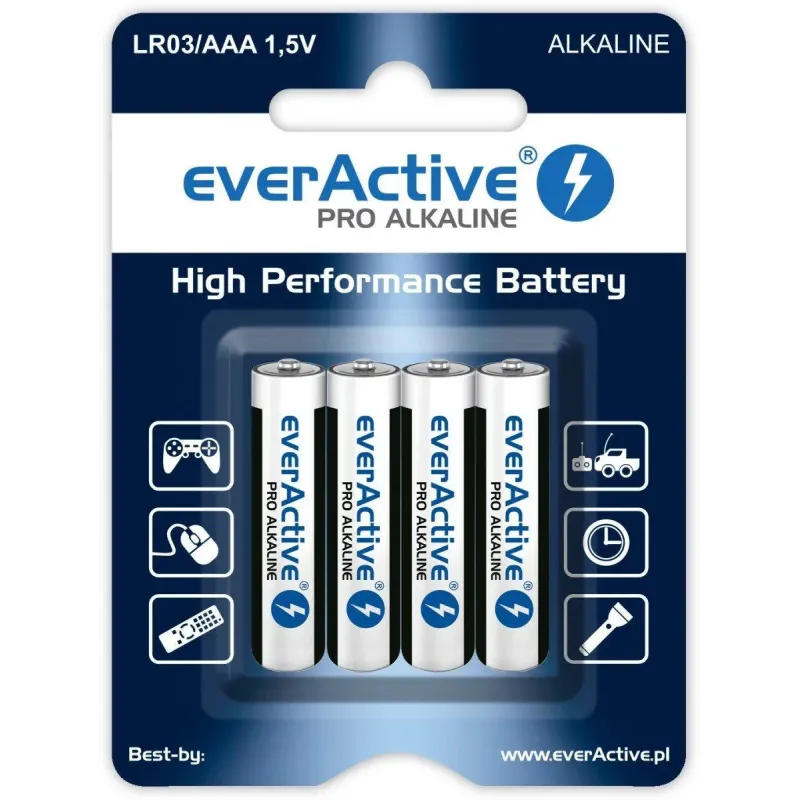 Baterie alkaliczne AAA/LR03 everActive Pro Alkaline 4 sztuki to bateria. Zapewnia zasilanie urządzeń przenośnych i elektronicznych.
