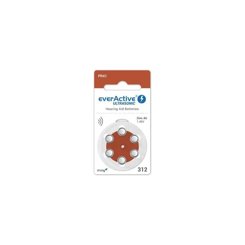 Baterie do aparatów słuchowych 312 / PR41 everActive ULTRASONIC 312- 6 to bateria. Zapewnia zasilanie urządzeń przenośnych i elektronicznych.