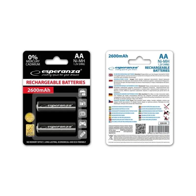 Akumulatorki AA Esperanza 2600mAh 2szt. czarne to bateria. Zapewnia zasilanie urządzeń przenośnych i elektronicznych.