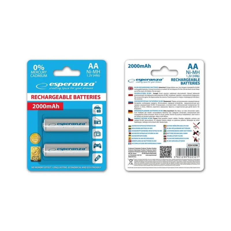 Akumulatorki AA Esperanza 2000mAh 2szt. białe to bateria. Zapewnia zasilanie urządzeń przenośnych i elektronicznych.
