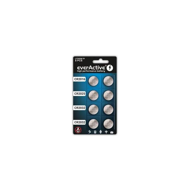Zestaw baterii litowych everActive 8 sztuk: 4 x CR2032, 2 x CR2025, 2 x