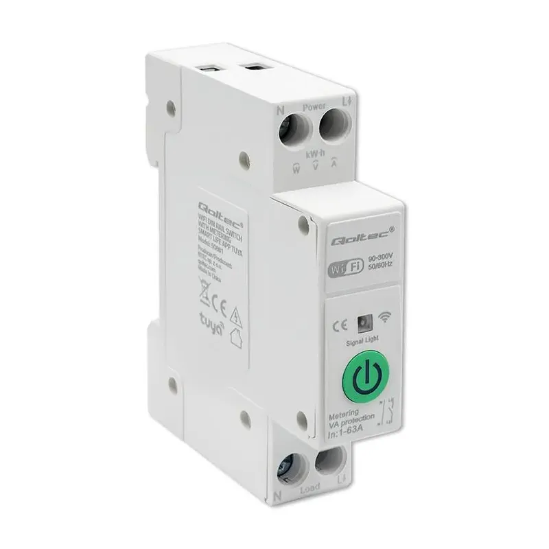 Przekaźnik Wi-Fi Qoltec 63A na szynę DIN z licznikiem energii elektyrcznej to czujnik. Monitoruje parametry otoczenia i reaguje na zmiany.