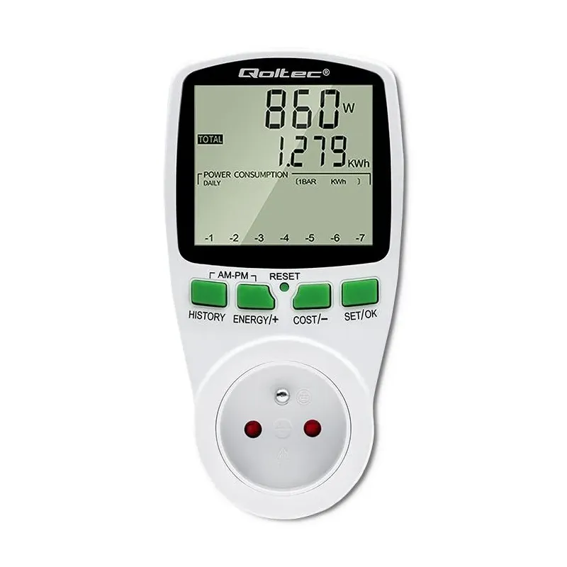 Watomierz Qoltec Licznik zużycia energii PM0627 z historią pomiaru | 3680W