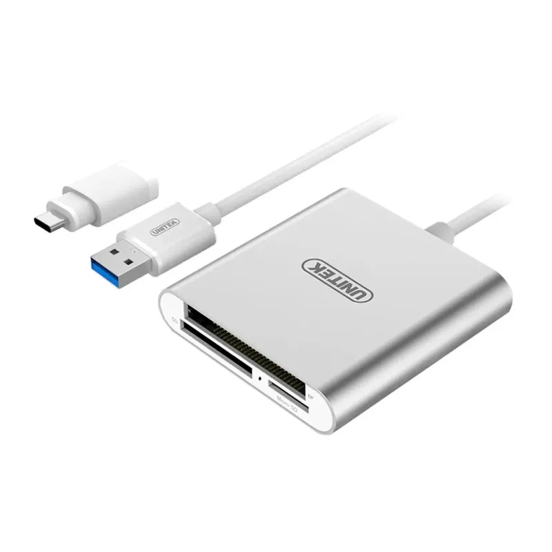 Czytnik kart pamięci Unitek Y-9313D USB Typ-C All-in-One Czytnik kart pamięci Unitek Y-9313D USB Typ-C All-in-One to czytnik kart pamięci. Umożliwia odczyt kart SD, microSD i innych nośników. Srebrny (Arctic Silver).