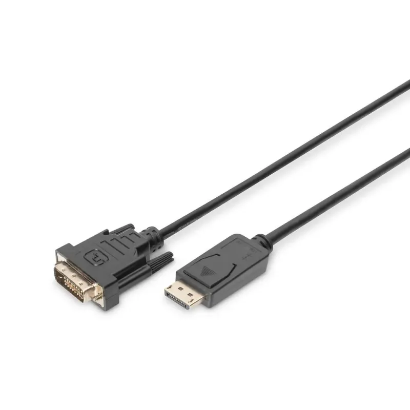 Kabel adapter DIGITUS DisplayPort z zatrzaskiem 1080p 60Hz FHD Typ DP/DVI-D to kabel DisplayPort o długości 3.00 m. Przesyła obraz i dźwięk cyfrowy w wysokiej rozdzielczości.