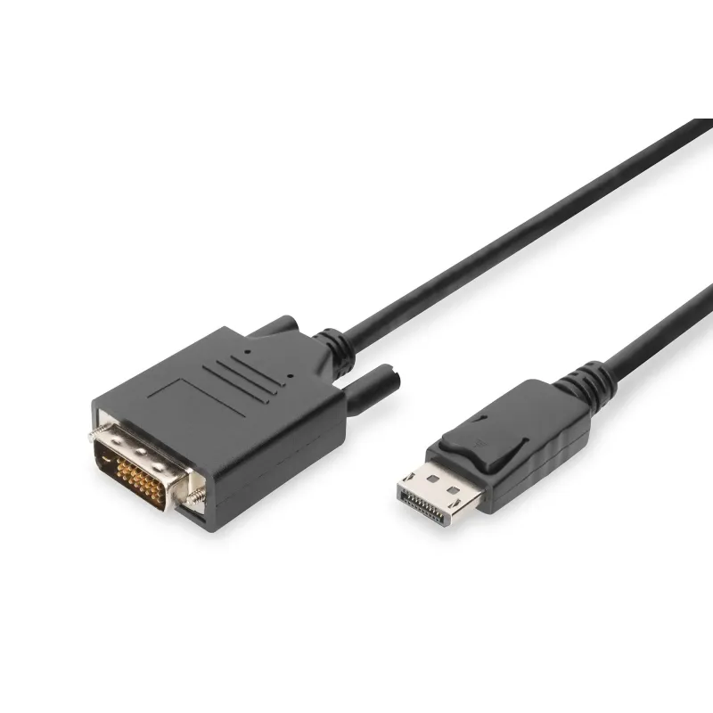 Kabel adapter DIGITUS DisplayPort z zatrzaskiem 1080p 60Hz FHD Typ DP/DVI-D to kabel DisplayPort o długości 2.00 m. Przesyła obraz i dźwięk cyfrowy w wysokiej rozdzielczości.