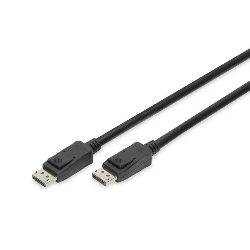 Kabel DisplayPort DIGITUS z zatrzaskami 8K 30Hz UHD Typ DP/DP M/M czarny 2m to kabel DisplayPort o długości 2.00 m. Przesyła obraz i dźwięk cyfrowy w wysokiej rozdzielczości.