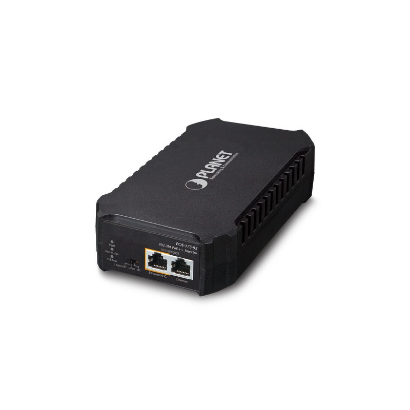 PLANET POE-175-95 to 1-portowy iniektor zasilania 802.3bt Power over Ethernet o maksymalnej mocy wyjściowej do 95 watów przez kable Ethernet.
