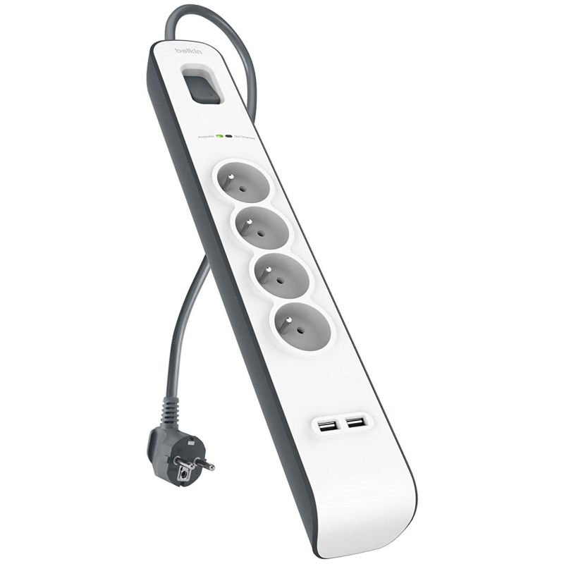 Belkin Listwa zasilająca przeciwprzepięciowa 525J, 4 gniazda, 2x USB-A, 2m