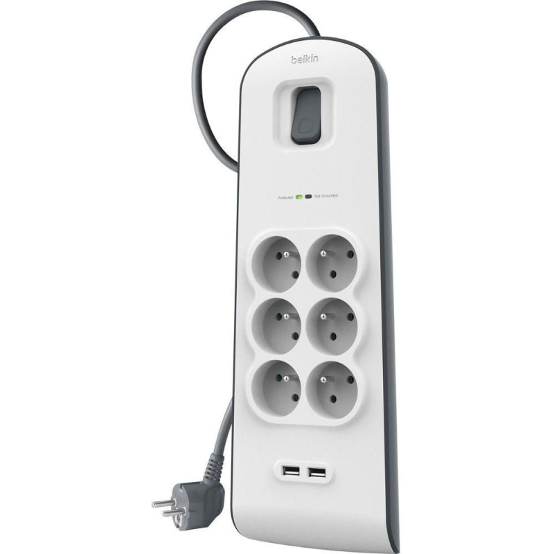 Belkin Listwa zasilająca przeciwprzepięciowa 650J, 6 gniazd, 2x USB-A, 2m