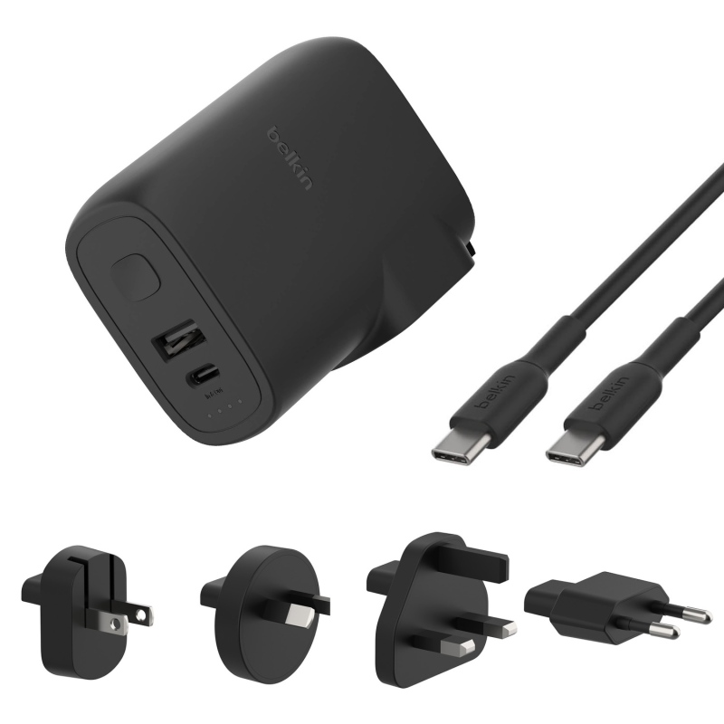 Hybrydowa ładowarka Belkin BPZ003BT1MBK-B6 została zaprojektowana z myślą o podróżujących – w zestawie znajdują się aż cztery wymienne wtyczki: europejska (EU), amerykańska (USA), brytyjska (GB) oraz wtyczka z ukośnie ustawionymi bolcami, kompatybilna m.in. z gniazdkami w Australii i Nowej Zelandii. Dzięki temu ładowarka sprawdzi się praktycznie w każdym zakątku świata. Co więcej, urządzenie spełnia wymagania TSA dotyczące transportu zewnętrznych baterii litowych w bagażu podręcznym (poniżej 100 Wh), dzięki czemu możesz bez przeszkód zabierać je na pokład samolotu. To idealne rozwiązanie dla osób często podróżujących służbowo lub prywatnie.