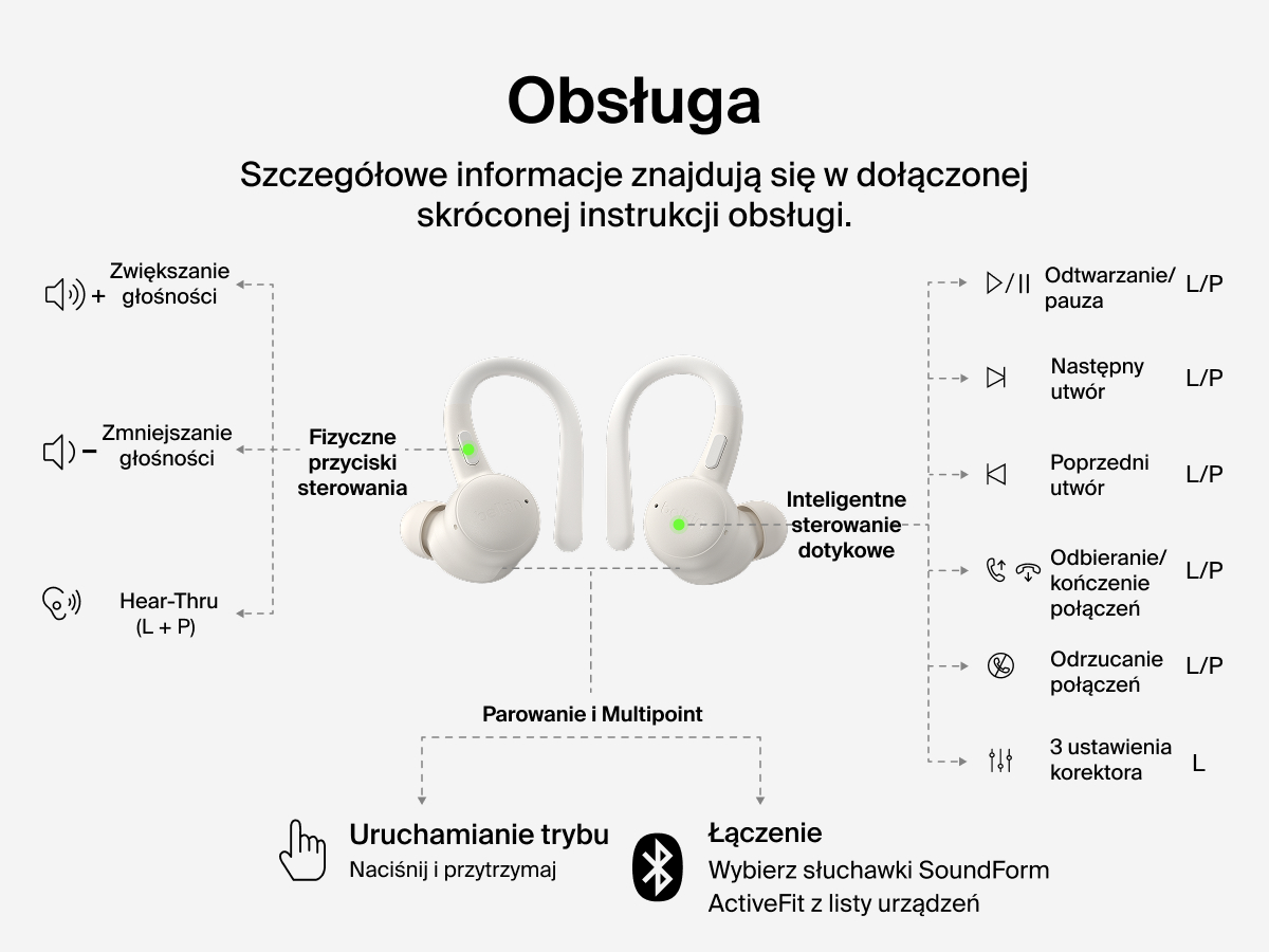 Funkcja przepuszczania dźwięków pozwala słyszeć otoczenie bez zdejmowania słuchawek. - Fizyczne przyciski sterujące