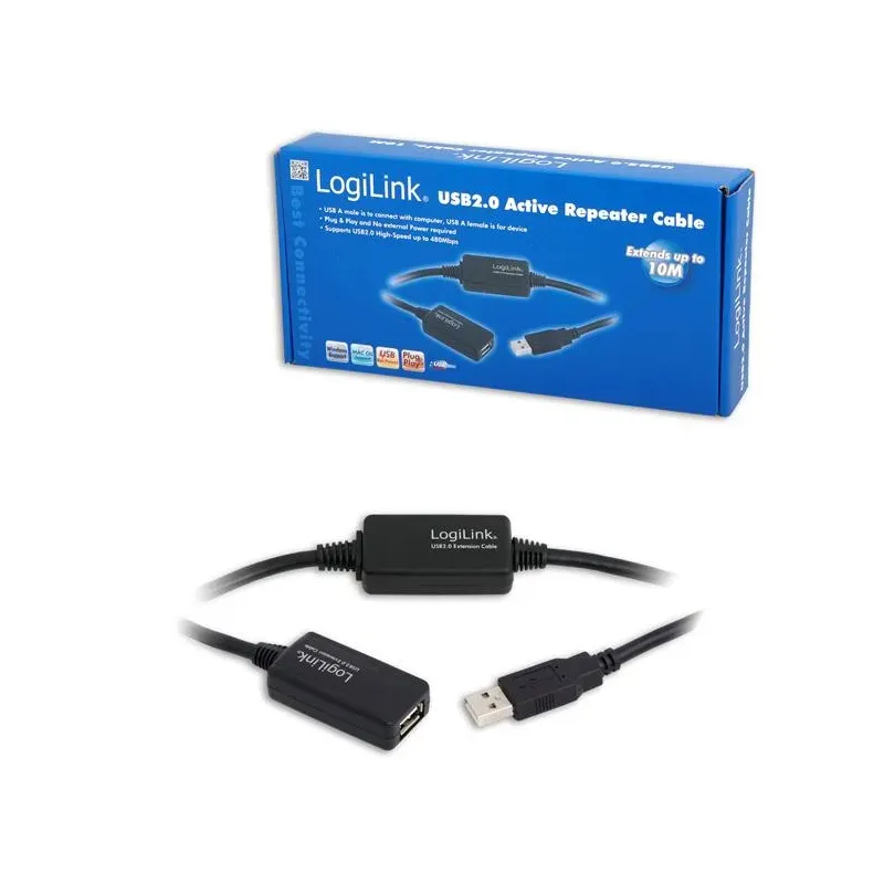 Kabel USB LogiLink UA0143 USB 2.0, aktywny wzmacniacz, 10m