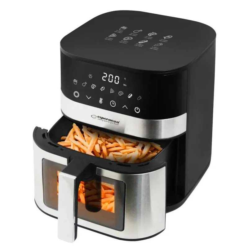 Frytkownica beztłuszczowa ESPERANZA PESCE ALLA GRIGLIA 5L Frytkownica beztłuszczowa ESPERANZA PESCE ALLA GRIGLIA 5L to frytkownica. Umożliwia przygotowanie frytek i innych potraw smażonych. Czarno-srebrny.