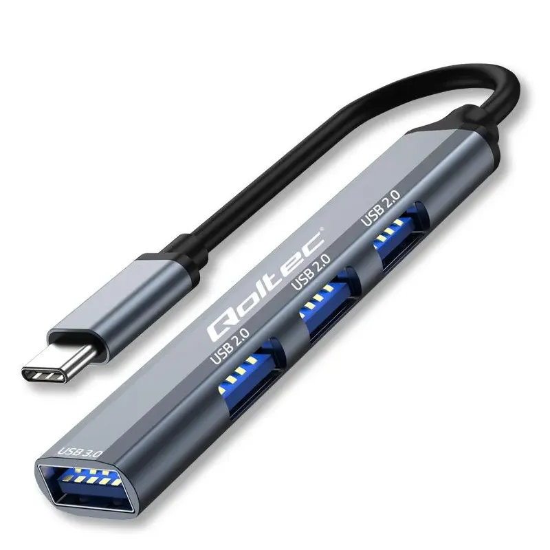 Hub Qoltec adapter USB-C 3.1 4w1 | USB 3.0 | 3x USB 2.0 to hub USB. Rozszerza liczbę portów USB w komputerze.