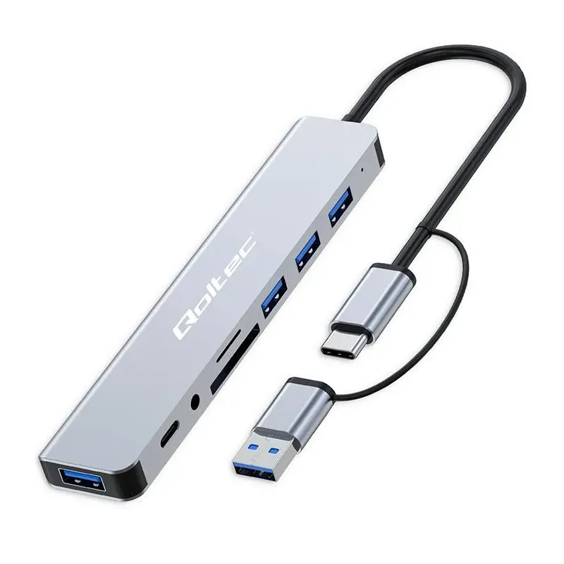 Hub Qoltec 8w1 USB-C/USB | USB-C | 4xUSB | SD/TF card | Jack 3.5mm TRRS