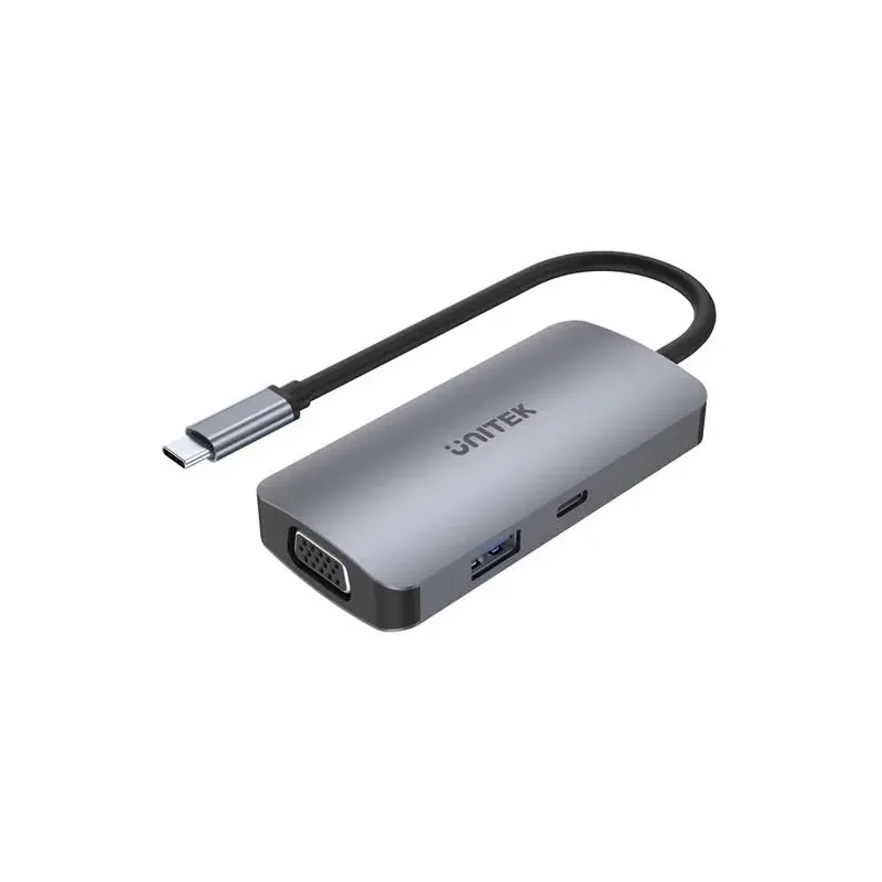 Hub USB-C Unitek D1051A 1x USB 3.1, VGA, 2x HDMI, PD to hub USB. Rozszerza liczbę portów USB w komputerze.
