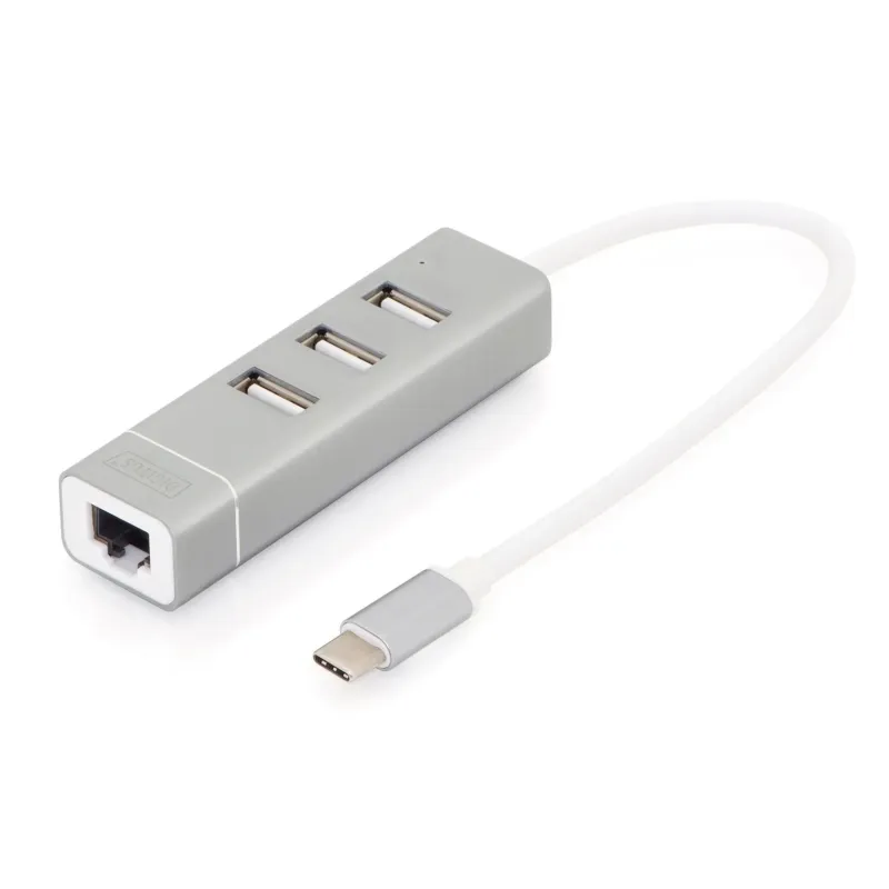 Hub/Koncentrator 3-portowy DIGITUS USB 2.0 HighSpeed Typ C z Fast Ethernet