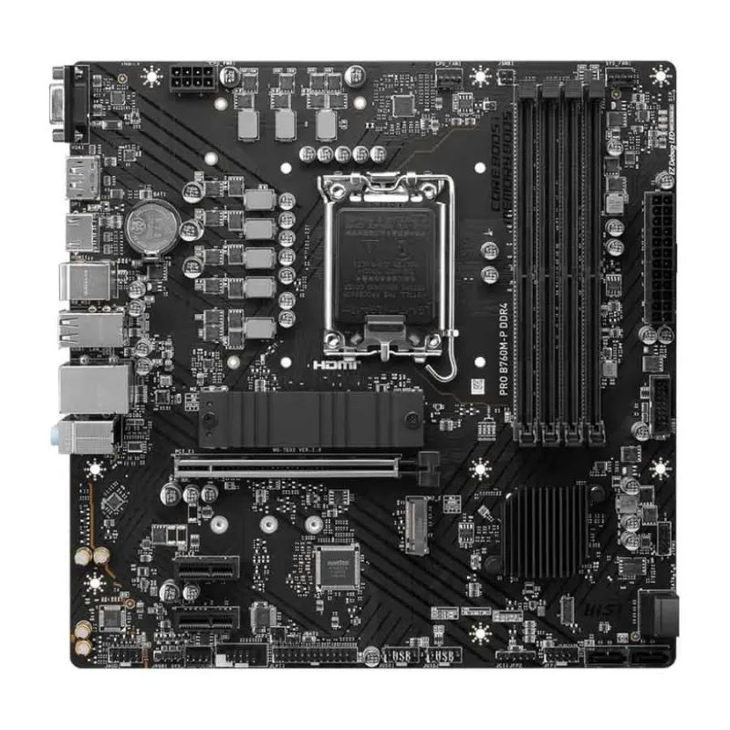 Płyta MSI PRO B760M-P DDR4 /B760/DDR4/SATA3/M.2/USB3.1/PCIe4.0/s.1700/mATX to płyta główna Intel LGA 1700. Stanowi podstawę zestawu komputerowego z procesorami Intel 12./13./14. generacji.