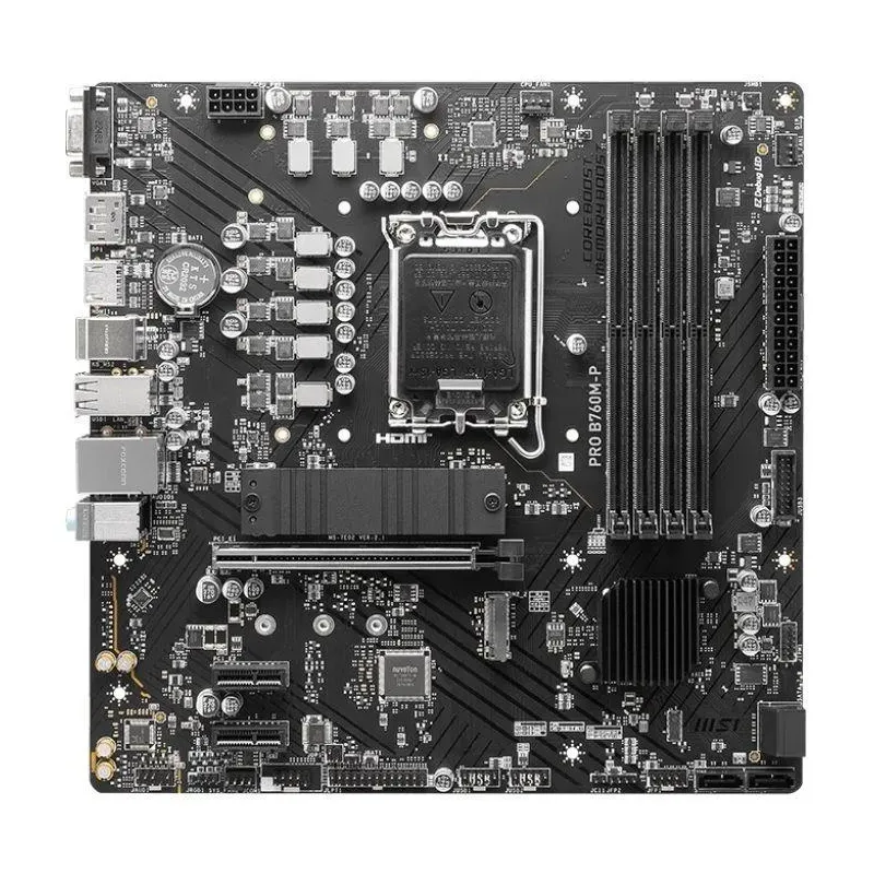 Płyta MSI PRO B760M-P /B760/DDR5/SATA3/M.2/USB3.0/PCIe4.0/s.1700/mATX to płyta główna Intel LGA 1700. Stanowi podstawę zestawu komputerowego z procesorami Intel 12./13./14. generacji.