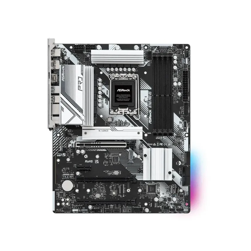 Płyta ASRock B760 PRO RS /B760/DDR5/SATA3/M.2/USB3.1/PCIe5.0/s.1700/ATX Płyta ASRock B760 PRO RS /B760/DDR5/SATA3/M.2/USB3.1/PCIe5.0/s.1700/ATX to płyta główna Intel LGA 1700. Stanowi podstawę zestawu komputerowego z procesorami Intel 12./13./14. generacji.