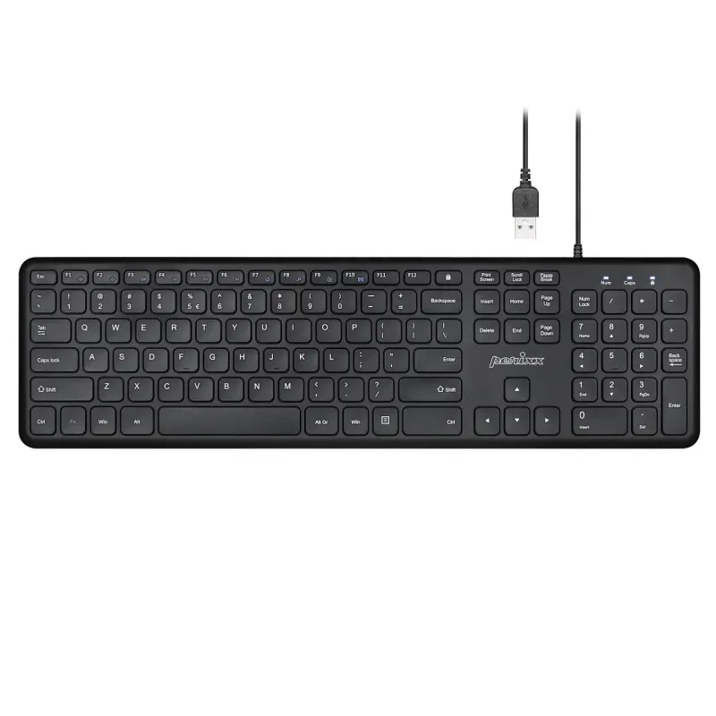 Klawiatura przewodowa Perixx PERIBOARD-210 scissor, ultra-flat, czarna to klawiatura z podłączeniem przewodowym. Umożliwia wygodne pisanie i sterowanie komputerem.