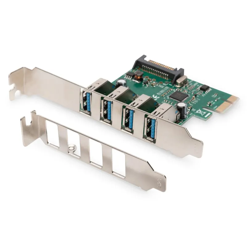 Kontroler USB 3.0 DIGITUS PCIe, 4x USB 3.0, Chipset VL805 to kontroler USB. Dodaje dodatkowe porty USB do komputera.