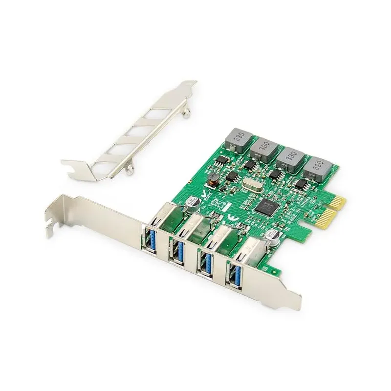 Kontroler USB 3.0 DIGITUS PCIe, 4x USB 3.0, Low Profile, Chipset VL805 to kontroler USB. Dodaje dodatkowe porty USB do komputera.