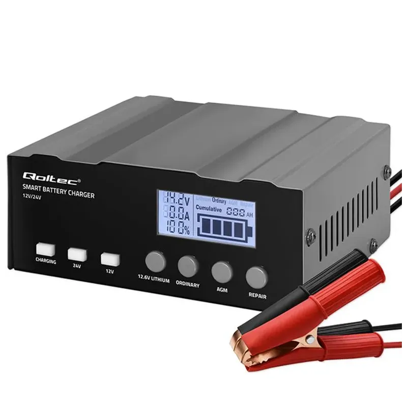 Ładowarka inteligentna Qoltec mikroprocesorowa 12V | 12.6V | 24V | to ładowarka o długości 1.00 m. Zapewnia szybkie i bezpieczne ładowanie urządzeń mobilnych.