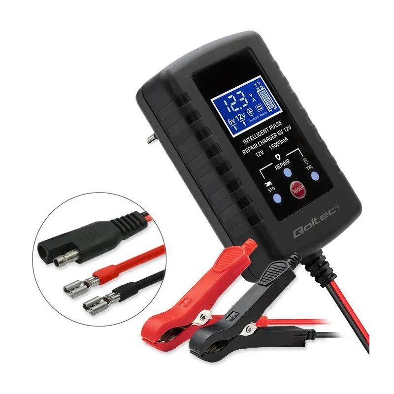 Ładowarka do akumulatora Qoltec AGM GEL STD 6V/12V | 2A | Prostownik z to ładowarka o długości 1.70 m. Zapewnia szybkie i bezpieczne ładowanie urządzeń mobilnych.