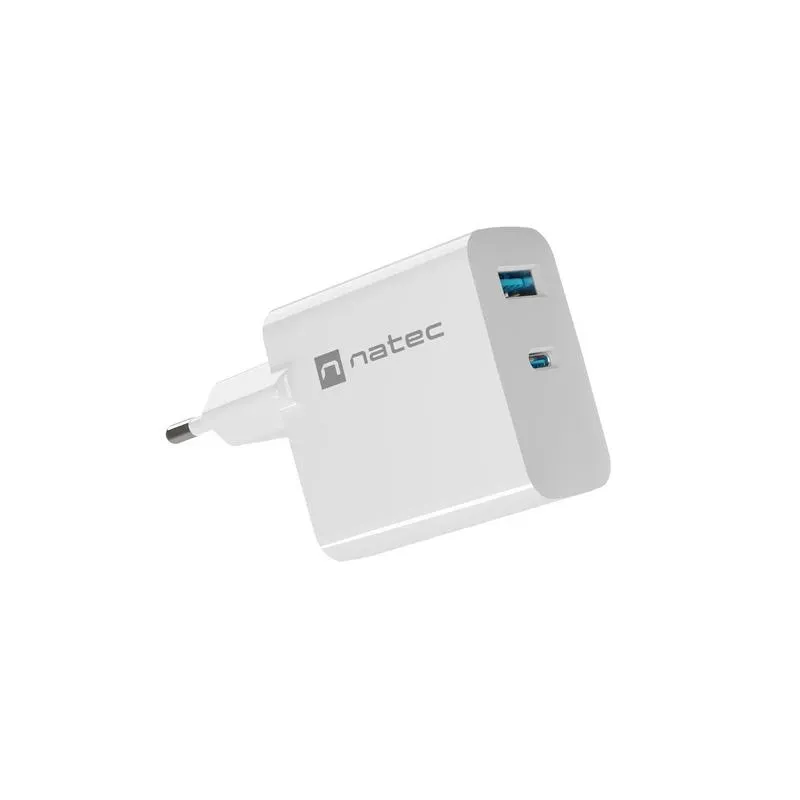 Ładowarka sieciowa, Ładowarka do laptopów Natec Ribera Gan 1x USB-A + 1x to ładowarka. Zapewnia szybkie i bezpieczne ładowanie urządzeń mobilnych.