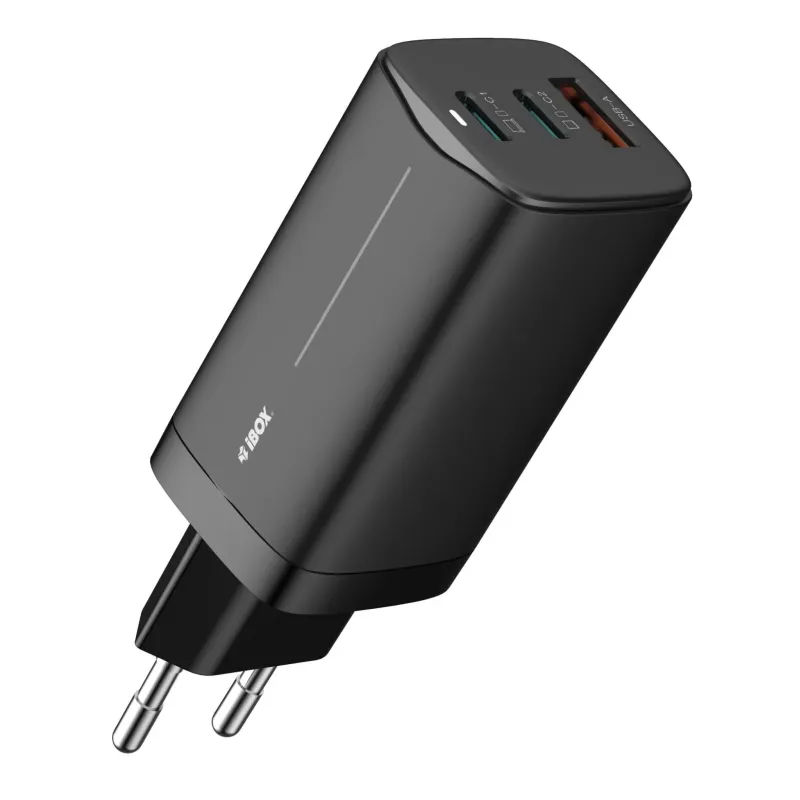 Ładowarka sieciowa GaN iBOX C-65 USB-C PD65W, kabel USB-C, Black