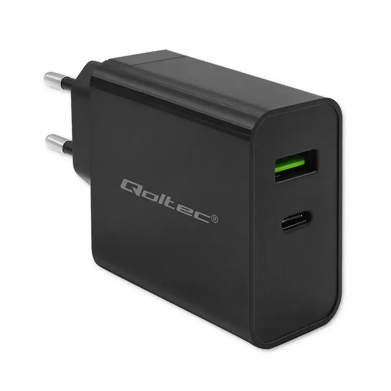 Ładowarka sieciowa Qoltec Super Quick PD | 1xUSB-C | 1xUSB | 45W | 5-20V | to ładowarka. Zapewnia szybkie i bezpieczne ładowanie urządzeń mobilnych.