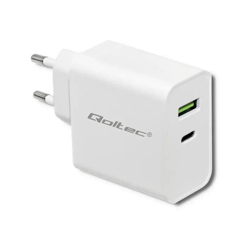 Ładowarka sieciowa Qoltec 45W | 5-20V | 2.4-3A | USB typ C PD | USB | Biała