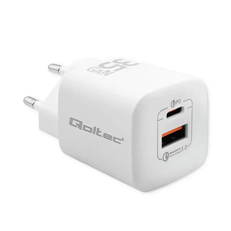 Ładowarka sieciowa Qoltec 35W GaN ULTRA | 5-20V | 2.25-3A | 1 x USB typ C to ładowarka. Zapewnia szybkie i bezpieczne ładowanie urządzeń mobilnych.