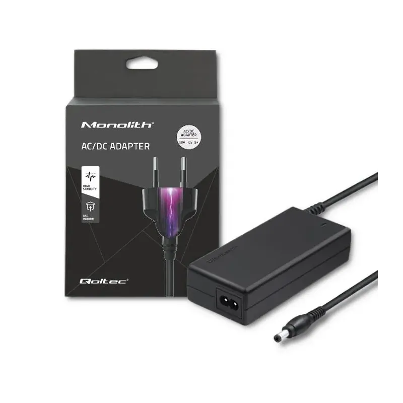 Zasilacz sieciowy Qoltec desktopowy 36W | 12V | 3A | 5.5*2.1 + kabel to ładowarka o długości 1.40 m. Zapewnia szybkie i bezpieczne ładowanie urządzeń mobilnych.
