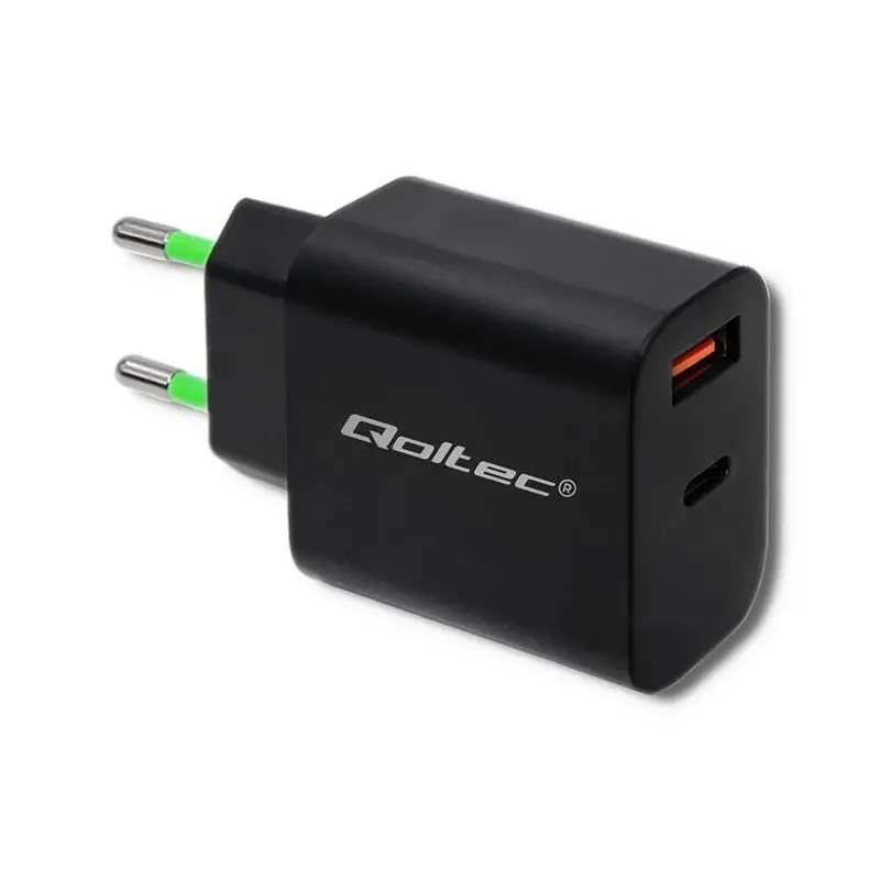 Ładowarka sieciowa Qoltec 18W | 5-12V | 1.5-3A | USB typ C PD | USB QC 3.0 to ładowarka. Zapewnia szybkie i bezpieczne ładowanie urządzeń mobilnych.